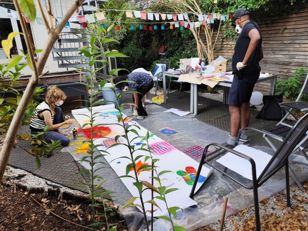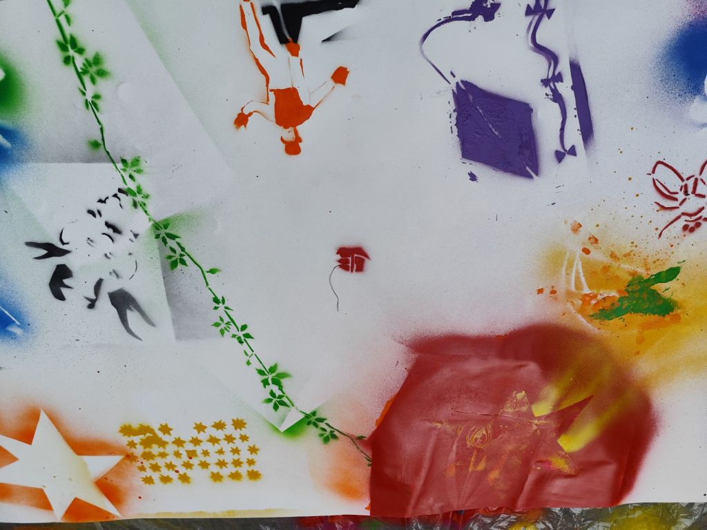 Sprayaktion Verfasst vonadmin4257916. Juni 202511. September 2025Veröffentlicht inAllgemein Jugendliche der Eggers Stiftung sprayen eigene Figuren, Zeichen und experimentieren mit Farben und Schablonen. Mann mit Hut und Drachen