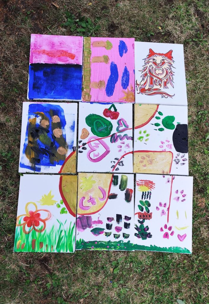 Stofftaschen wurden bedruckt und ein Bild in 9 Teilen ist entstanden, das in den Räumen der Stiftung seinen Platz finden wird.